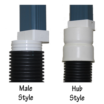 Downspout Adapters are made in both Offset and Concentric styles allowing for more flexibility during installation. The first two numbers in the description are the downspout size; the last number is the size of the Sewer, IPS or corrugated HDPE pipe.